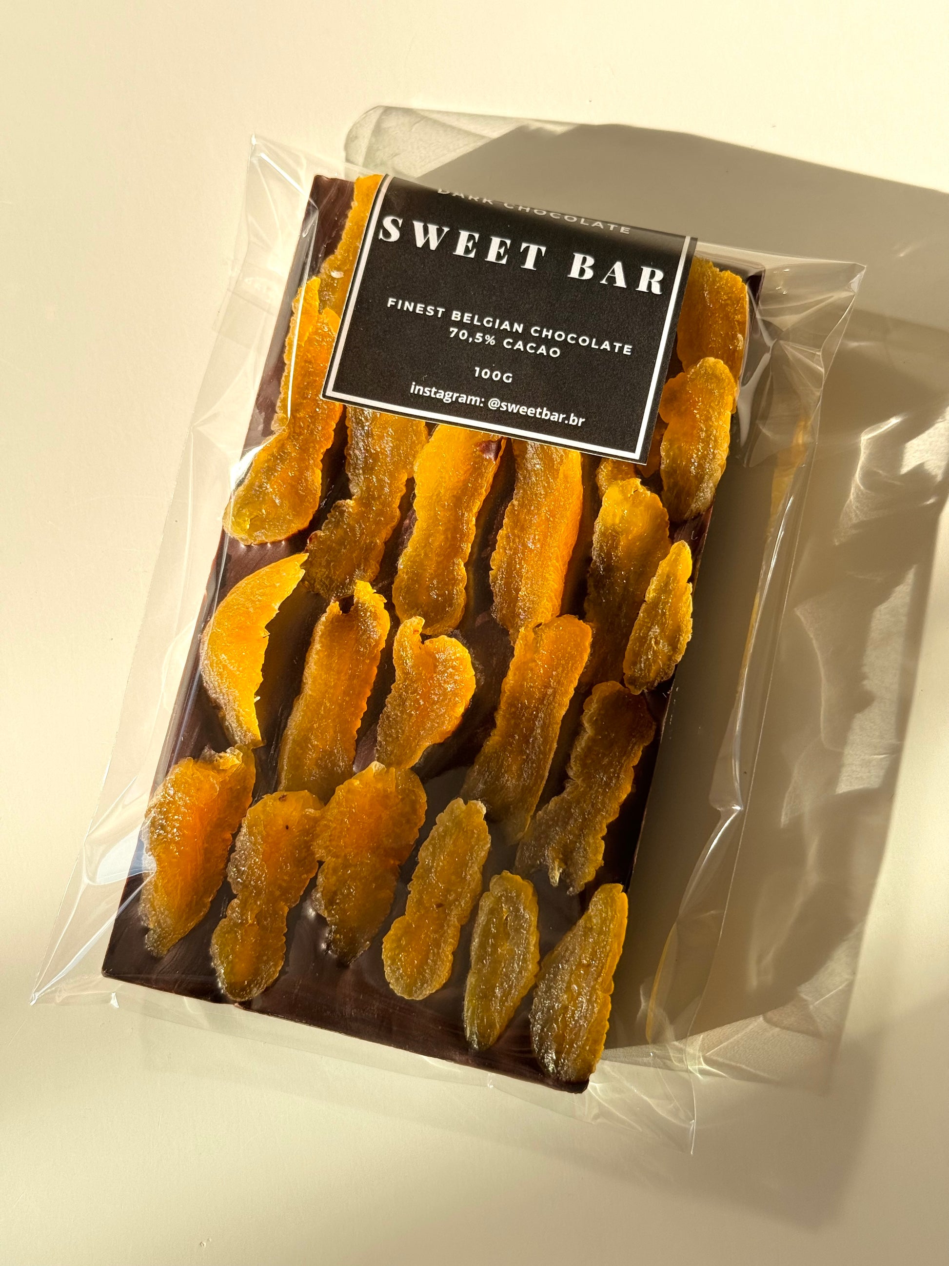 Barra de chocolate amargo belga Callebaut 70,5% de cacau com damasco.